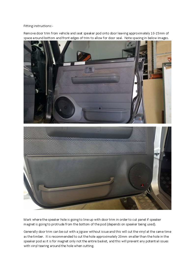 These units support a full depth speaker with 40mm clearance from door panel, aligned with the 4" hole already in steel panel for ash tray.