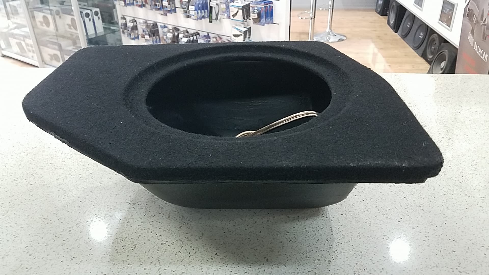The sub is recessed 9mm into box lid as shown in images to ensure clearance below back seat and prevent damage to subwoofer.